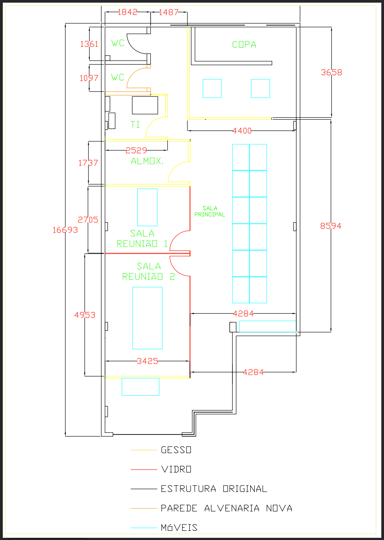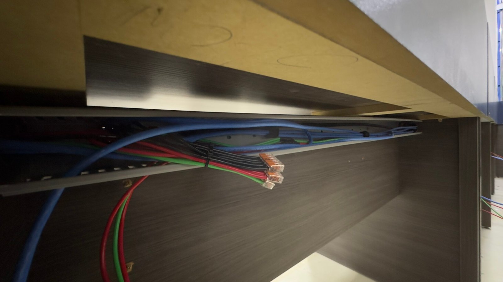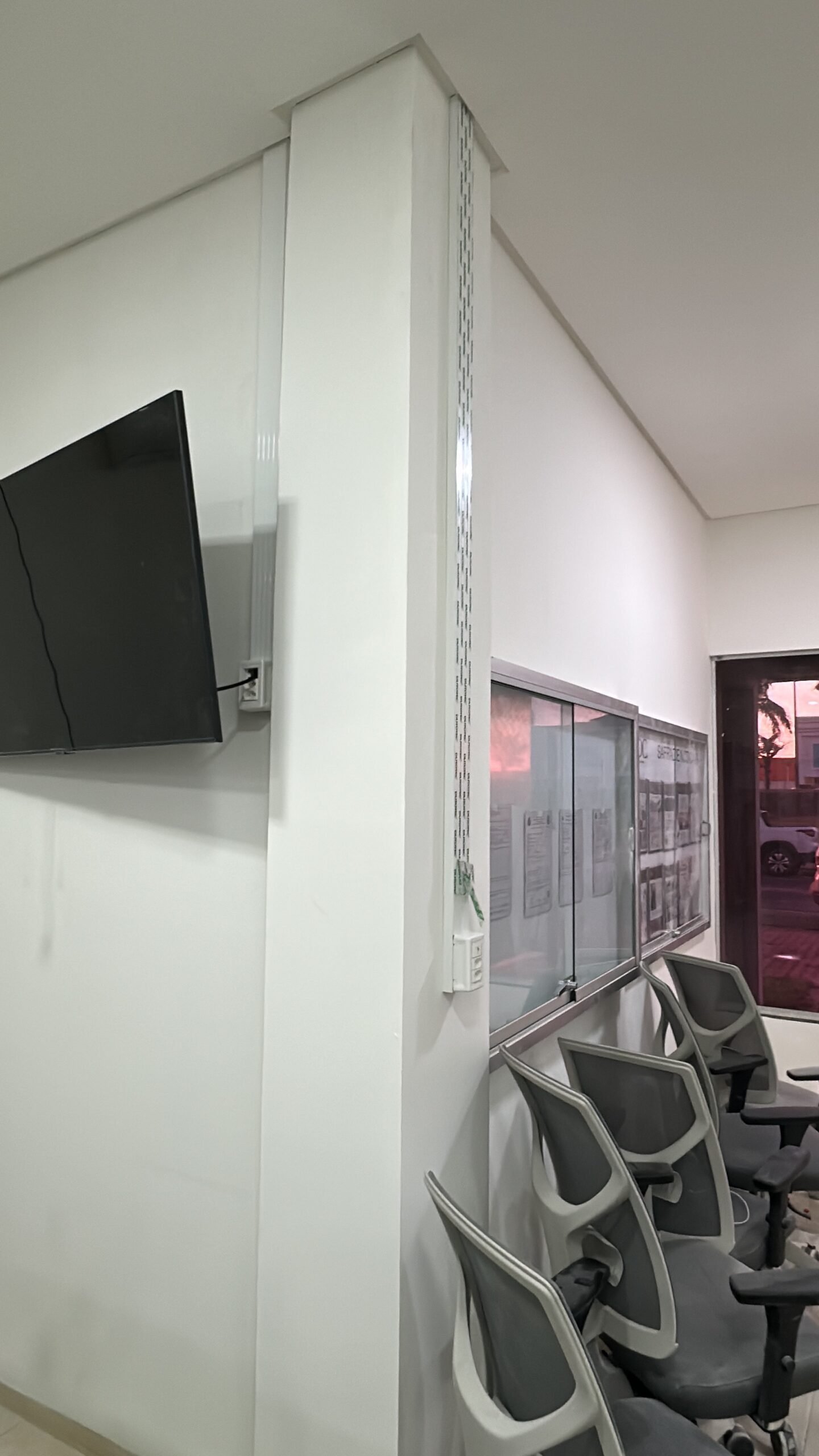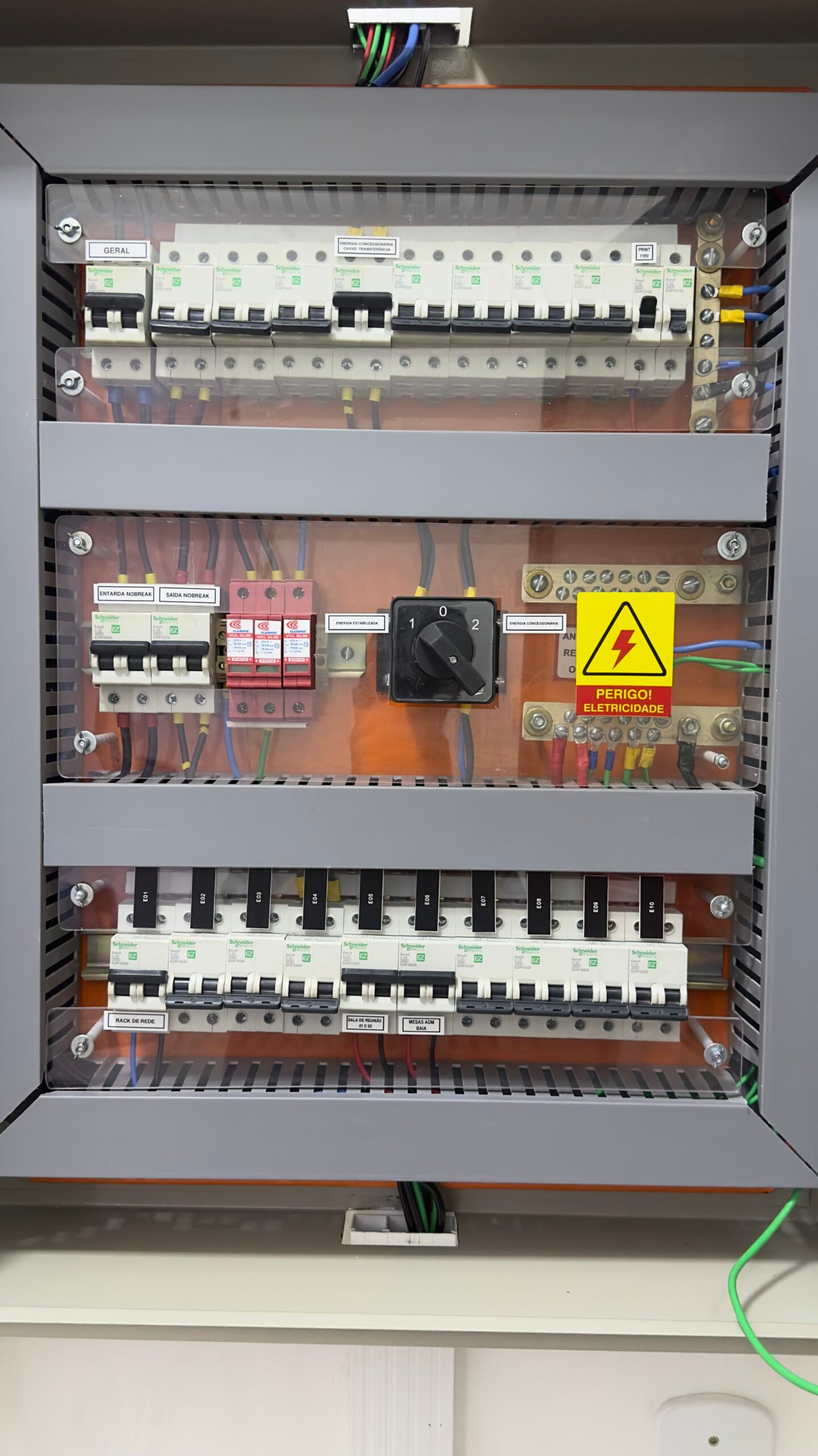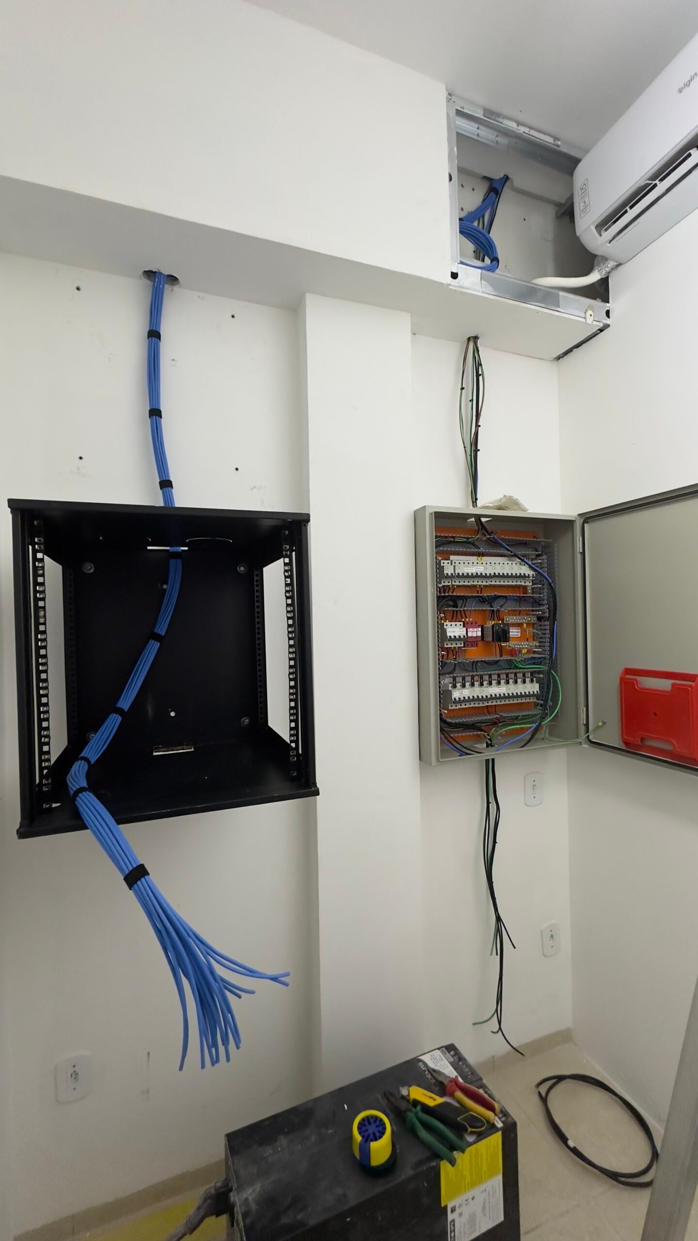 Foi realizada a instalação da nova rede elétrica, baia de adm e salas de reunião.