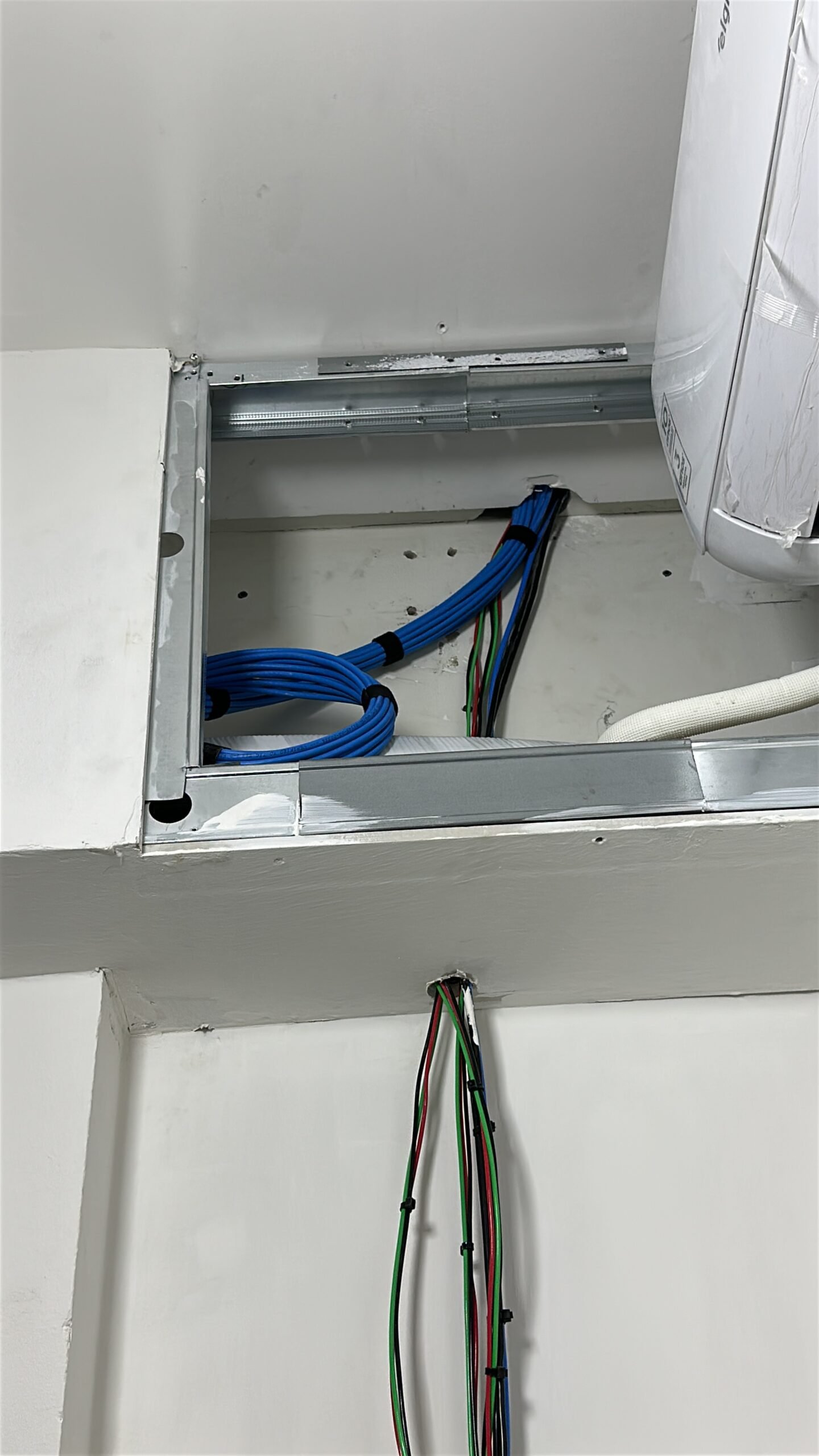 * Realizado o lançamento dos cabos UTP CAT6 e cabos flexíveis elétricos 2,5mm, sobre o forro de gesso.