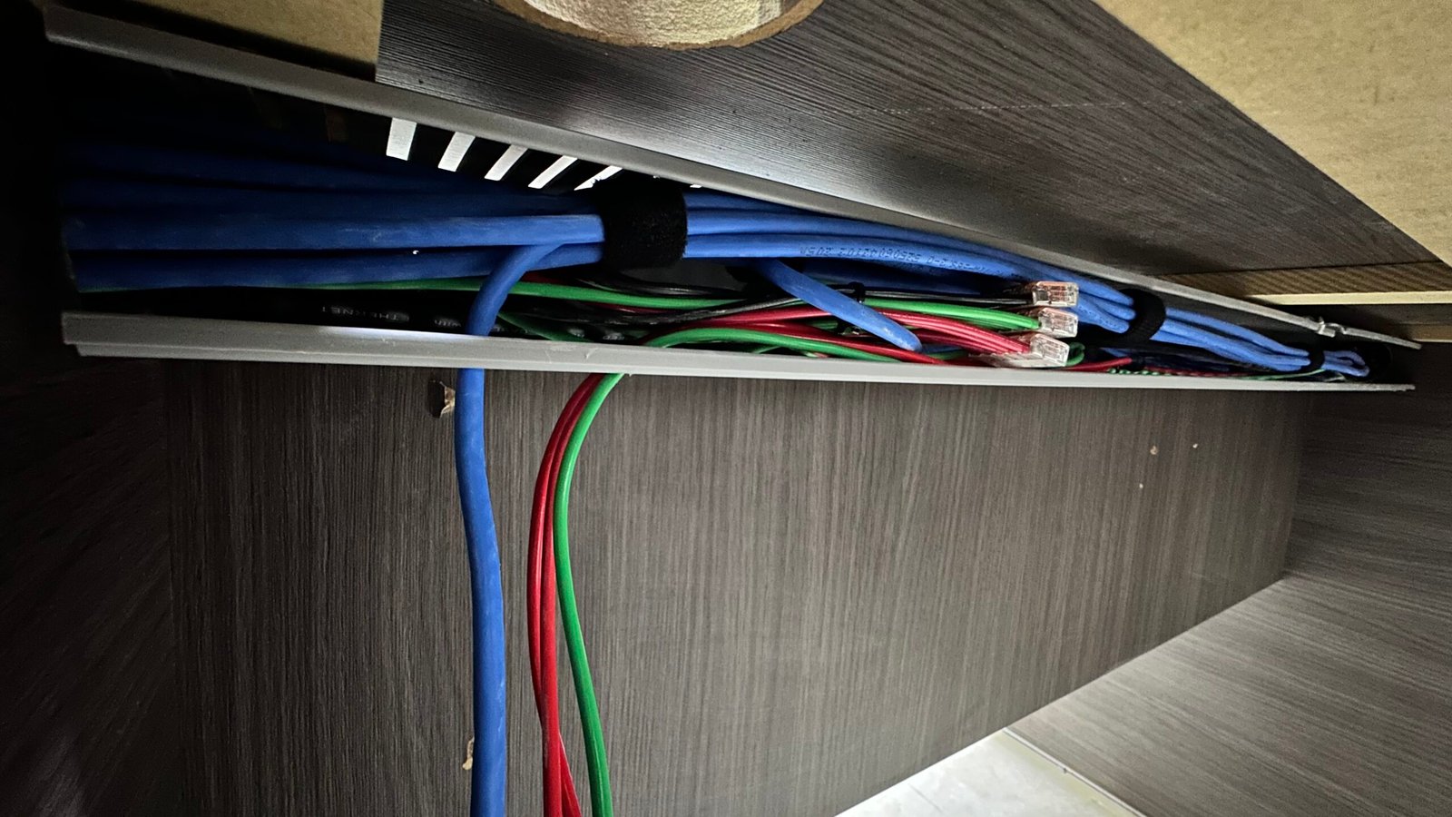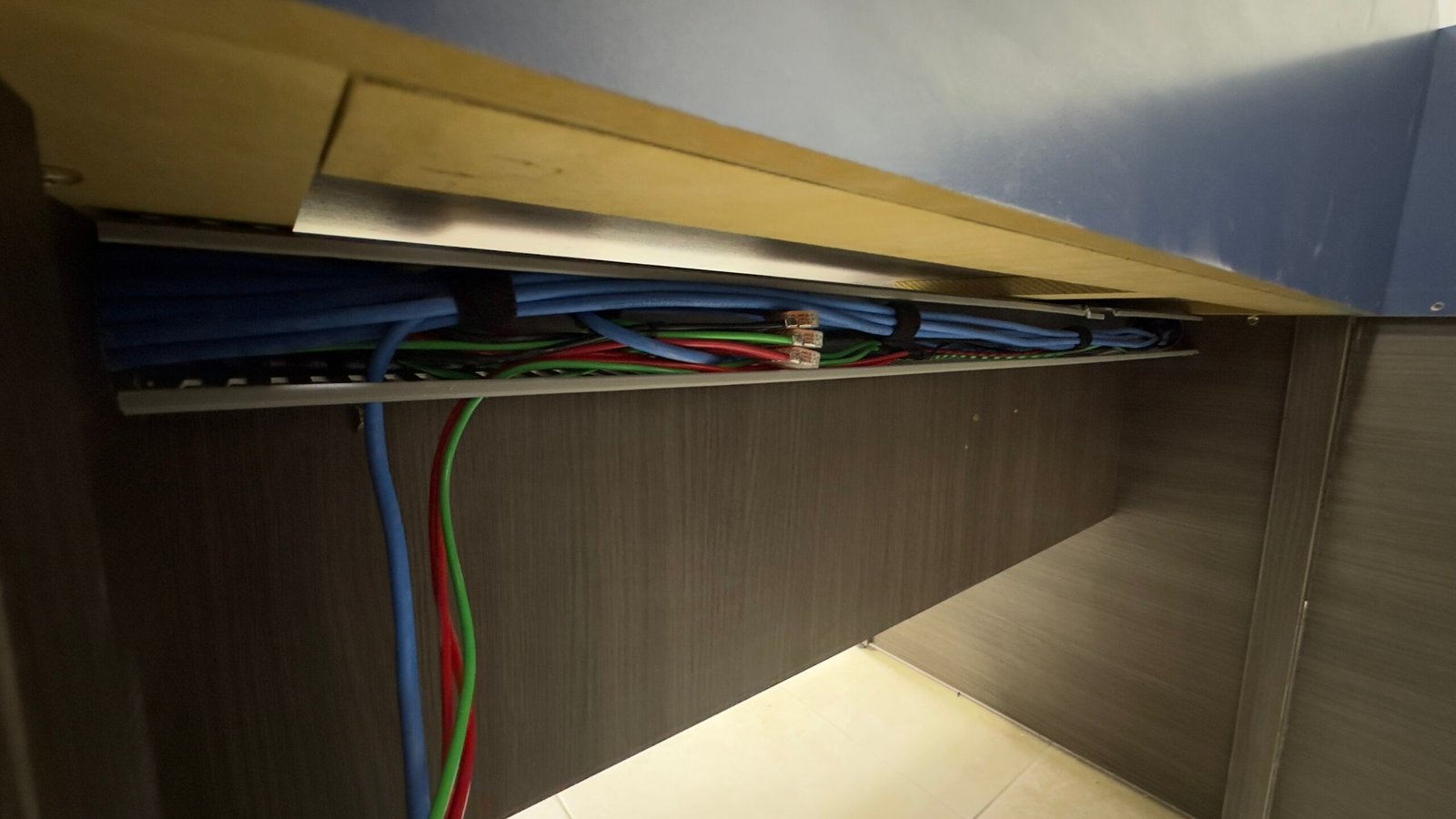 Sobre os cabos elétricos, foi realizada a instalação de uma nova rede, tanto a estabilizada quanto a suja.