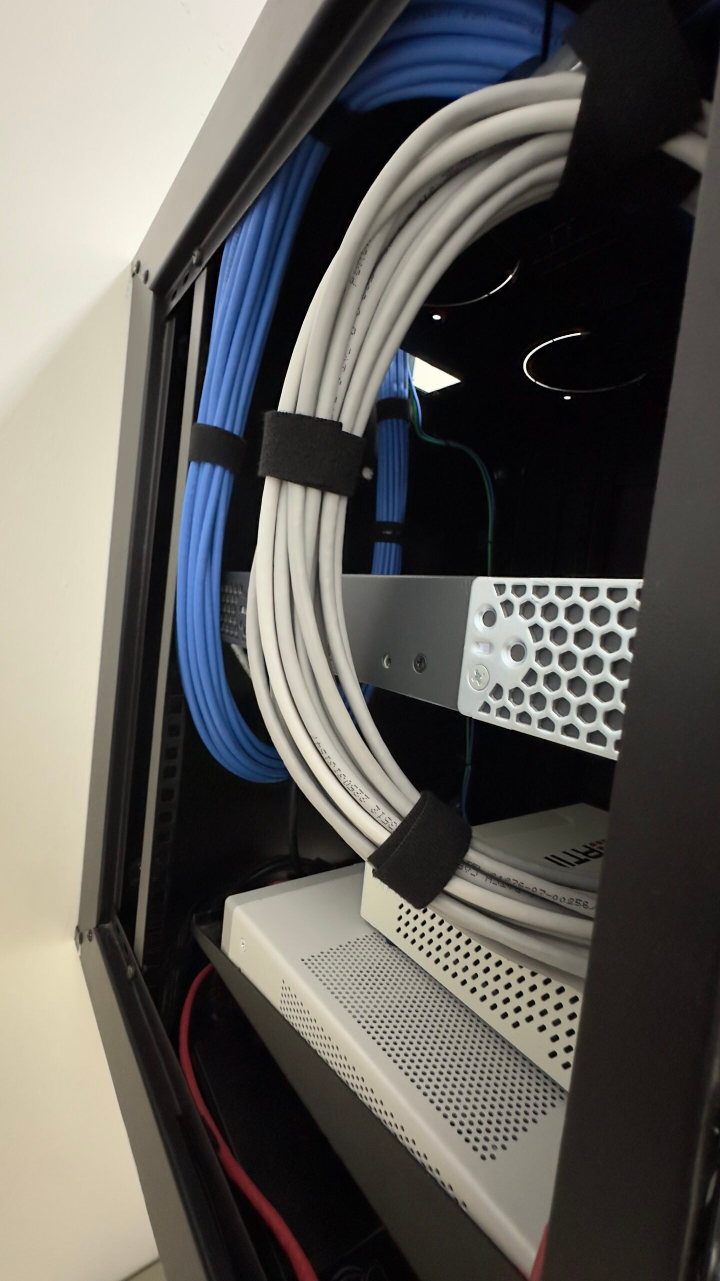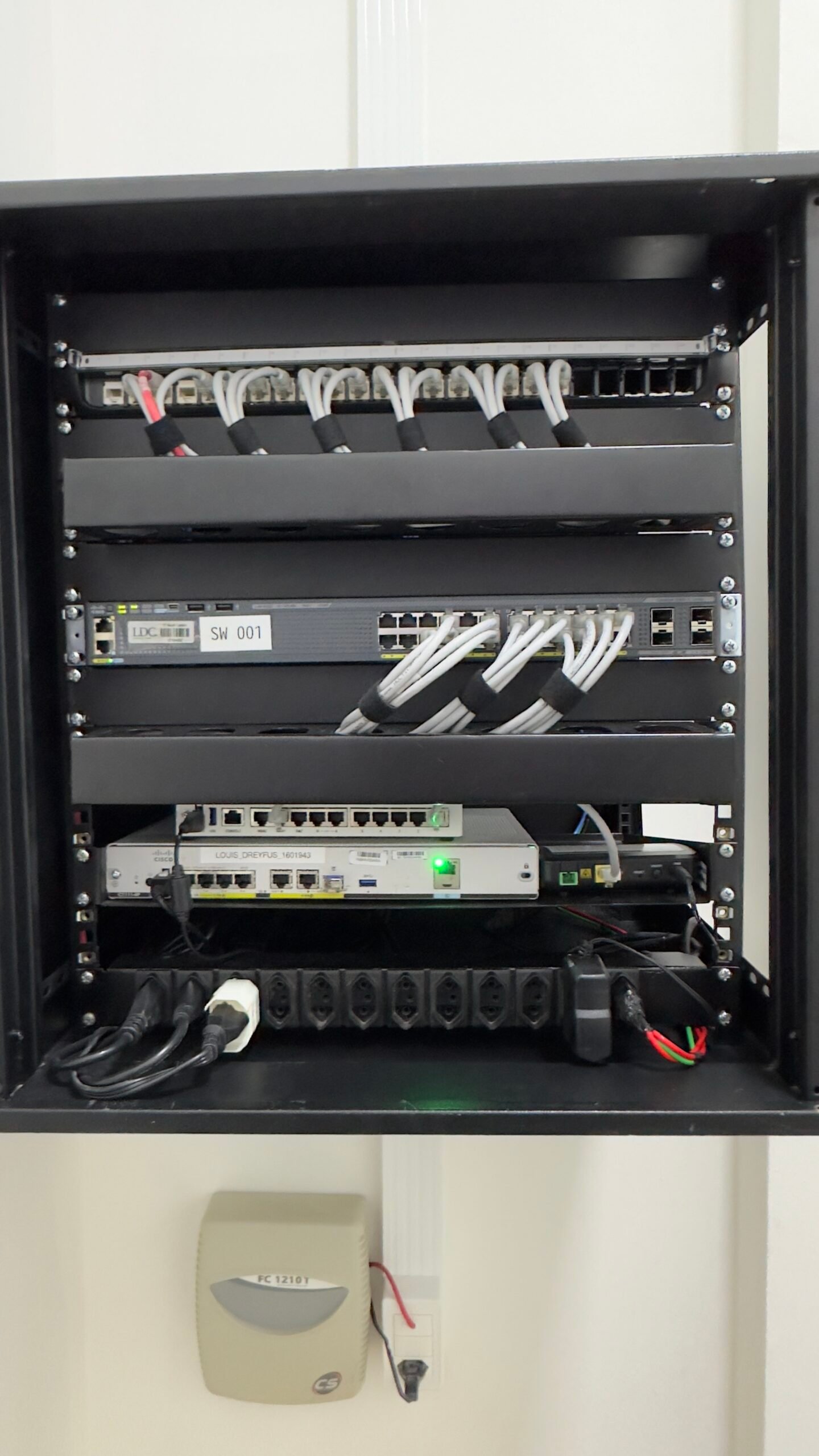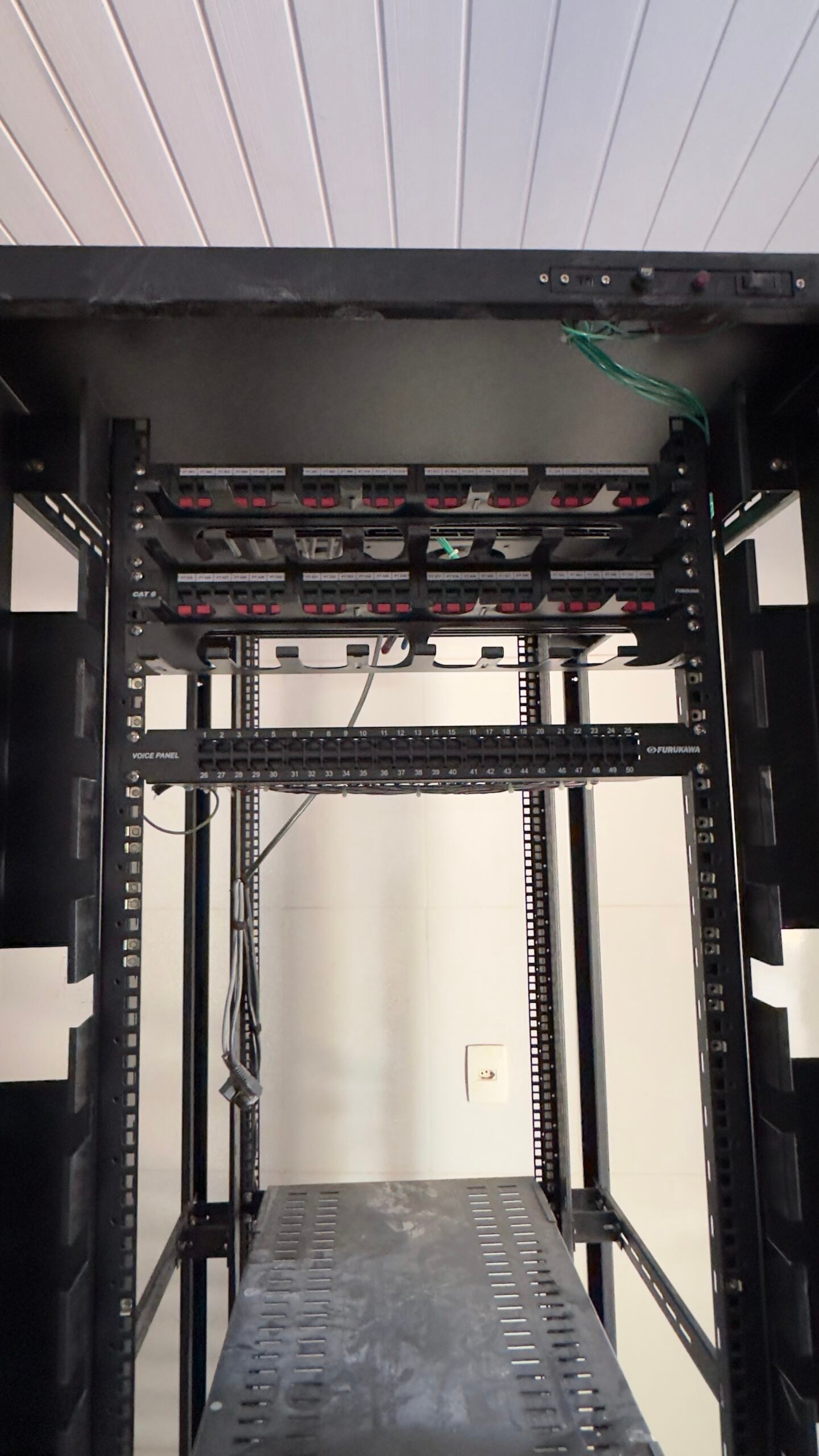 * Realizada a instalação dos acessórios, equipamentos de rede e patch cord e organização do rack de rede.