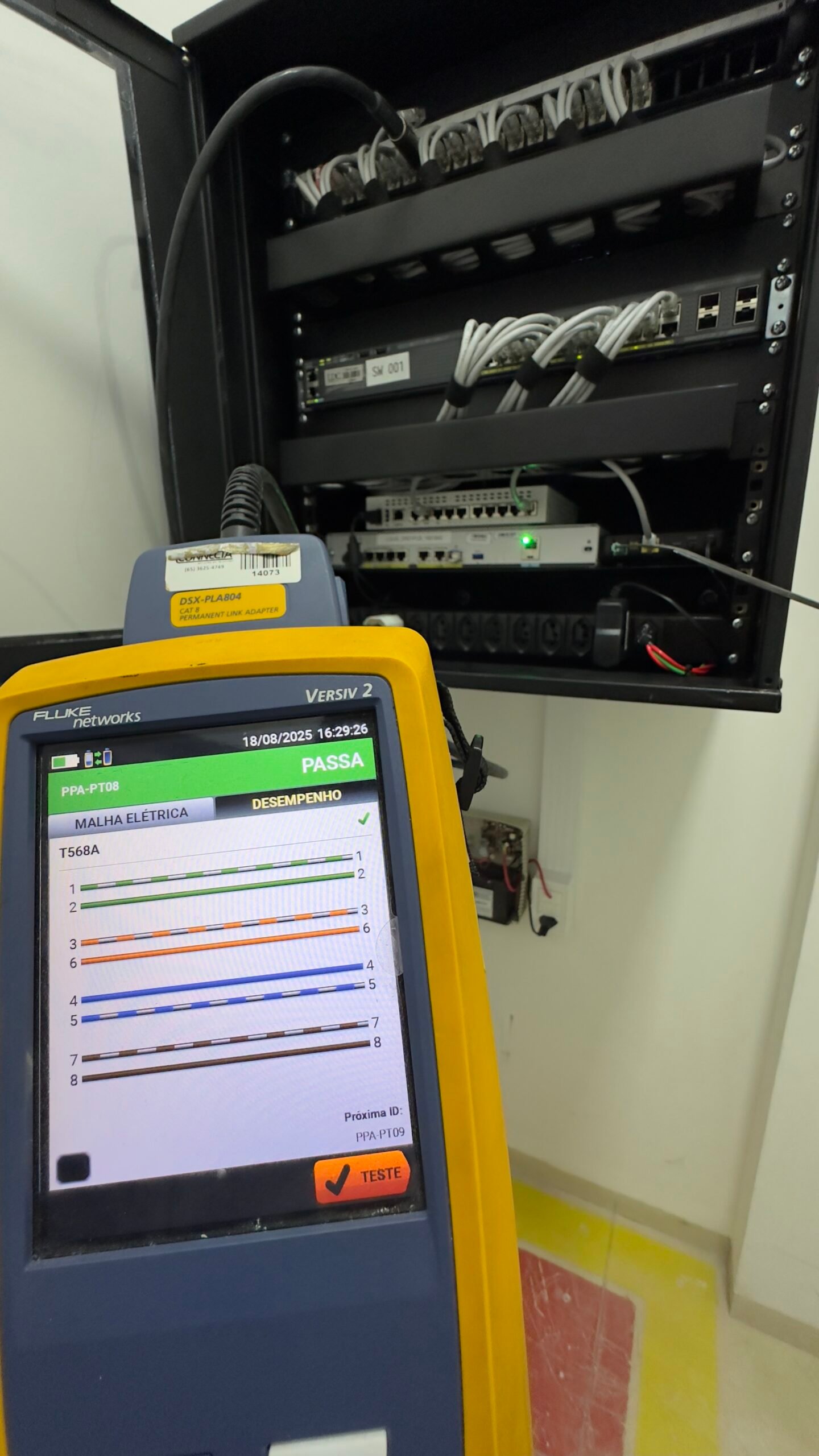 Sobre o cabeamento UTP, como a infra foi retirada, os mesmos foram cortados, sendo assim, não podendo ser reutilizados. Na proposta foram fornecidas duas caixas, então foi repassado um novo cabeamento.